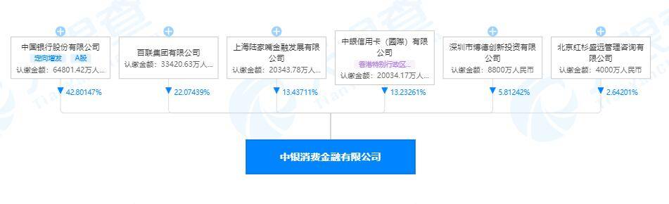 天眼查显示,大股东是中国银行,持股42.80%;第二大股东为百联集团,持股22.07%,第三大股东为上海陆家嘴金融发展有限公司,持股13.44%。
