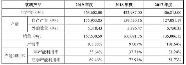 招股书显示,过去三年,欢乐家饮料产品的年产能利用率分别只有31.24%、37.71%和33.64%,存在明显的产能过剩问题。因此,欢乐家本次募资扩产的必要性以及产能达产后的消化能力备受市场质疑。