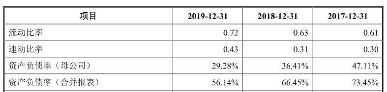 招股书显示,2017年-2019年,欢乐家流动比率分别为0.61、0.63和0.72,速动比率分别为0.3、0.31和0.43。可以看出,欢乐家两大短期偿债指标均显示,公司短期的偿债压力及流动性资金压力都不容乐观。对比同行来看,欢乐家流动比率、速动比率均远低于行业平均值,而公司资产负债率则高于同行业平均值。