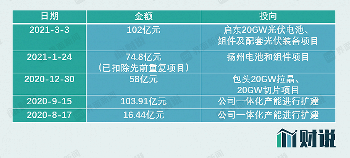 业务端向上首先要做的便是扩产。据不完全统计,自2020年下半年以来,晶澳科技已公告合计拟投资355.15亿元,占其146.56亿元净资产的2.42倍,主要用产能建设项目。此外,公司还有合肥组件技改项目等三个项目需投资5.95亿元。需要指出的是,和一般光伏企业在所属子行业扩产不同,晶澳科技的扩产范围涵盖光伏硅片、电池、组件等多数产业,其所需资金更大,难度更高。