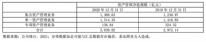 具体来看,公告显示,截至 2020 年末广发资管已累计完成六只大集合产品的公募化改造。管理的集合资产管理计划、单一资产管理计划和专项资产管理计划的净值规模较2019年末分别上升11.18%、6.88%和下降51.64%。