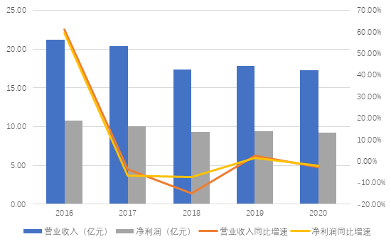 报告显示,2020年广发资管实现营业收入17.31亿元,同比减少2.70%;实现净利润9.24亿元,同比减少2.02%。这两项主要的业绩数据均为2016年以来的最低数据。