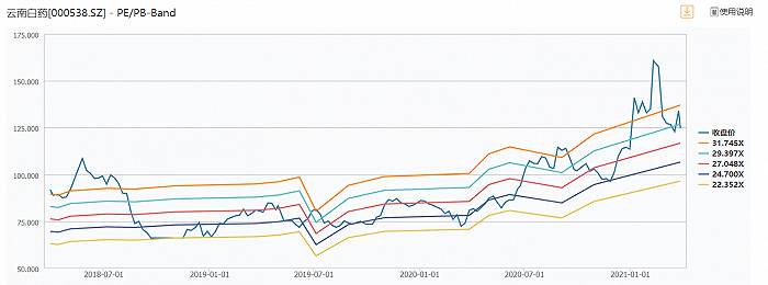 受工业大麻消息影响,3月29日云南白药大幅下挫6.89%,最终报收于124.81元/股,市值1594亿元,已较最高点缩水超20%。如果将投资收益计算在内,云南白药动态市盈率达29倍,仍处于相对偏高区间。但一旦剔除非经常性损益,仅用扣非后净利润计算,云南白药动态市盈率55倍,远超正常水平。