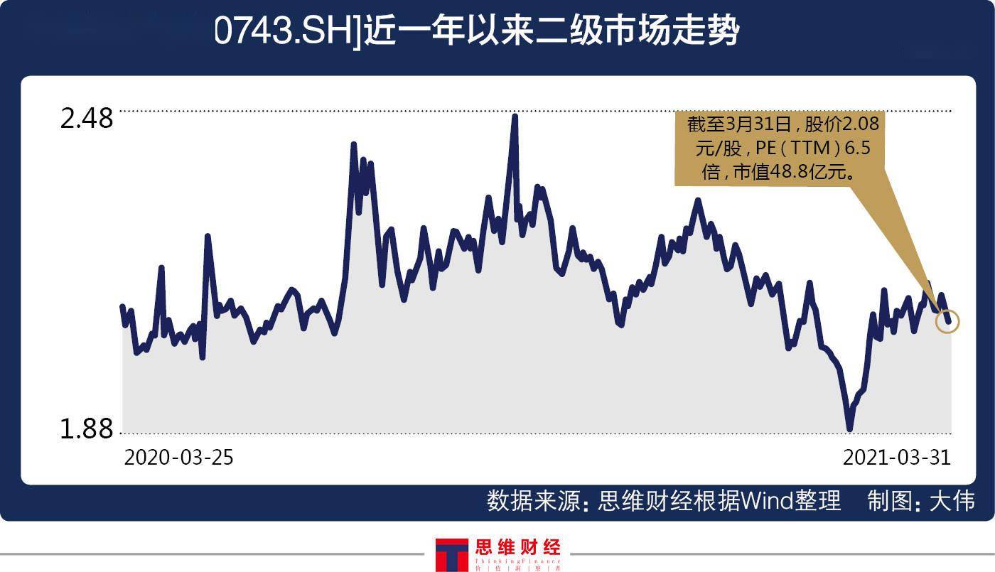 今年2月股价降至1.88元/股,创阶段性新低。截至3月31日,该股报收2.08元/股,市值48.8亿元,滚动市盈率仅6.5倍。