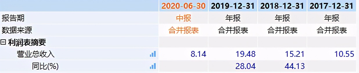 据招股书数据披露,2017年-2020年上半年,咸亨国际的营业收入分别为10.55亿元、15.21亿元、19.48亿元和8.14亿元,其中2018年和2019年的同比增长率分别为44.13%和28.04%,营业收入增速有所放缓。