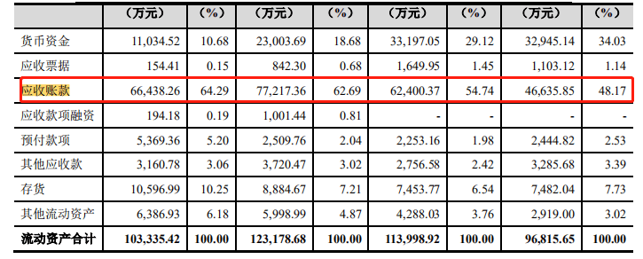 值得注意的是,咸亨国际不仅营业收入增速放缓,对重大客户依赖性较强,其应收账款占比也较高。2017年-2020年上半年,咸亨国际的应收账款分别为4.66亿元、6.24亿元、7.72亿元和6.64亿元,占各期末流动资产的比例分别为48.17%、54.74%、62.69%和64.29%,随着销售规模的逐年扩大,咸亨国际的应收账款规模呈增加趋势。
