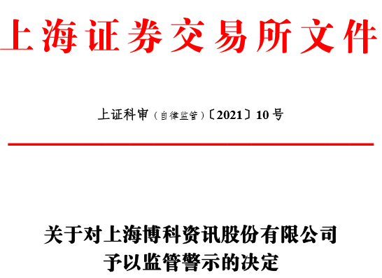 鉴于上述事实和情节,根据《审核规则》第九条、第七十二条、第七十四条和《上海证券交易所纪律处分和监管措施实施办法》等有关规定,科创板上市审核中心决定采取以下监管措施:对上海博科资讯股份有限公司予以监管警示。