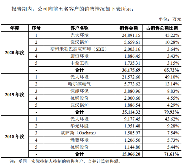 另一方面,公司是国内少数几家具备防腐防磨堆焊装备规模化生产能力的企业之一,推动了防腐防磨堆焊装备在垃圾焚烧发电领域的产业化应用。该产品在垃圾焚烧发电市场存在渗透率逐步提升的过程,较早采用该产品的下游客户即成为公司在报告期内的主要客户,也导致了公司的客户集中度相对较高。
