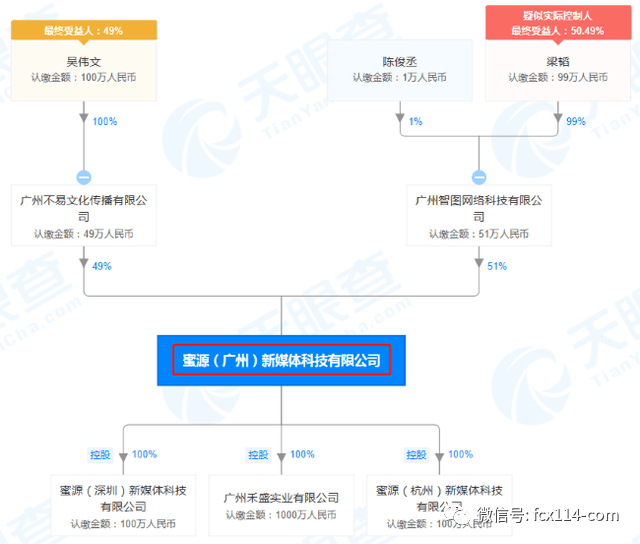 蜜源(广州)新媒体科技有限公司股权穿透图(来源:天眼查)