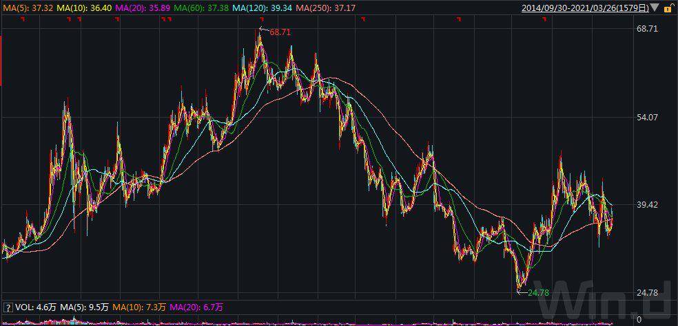 截至2021年4月1日,东阿阿胶报收于37.9元/股,市值为248亿元。