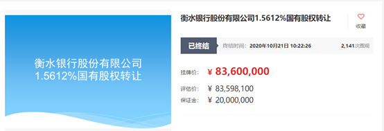 2020年10月20日,作为第七大股东----河北省国富农业投资集团拟转让所持有的该行1.56%的股权,股权转让价格为8360万元。不过第四产权网显示,此次股权转让于第二日就已被终结。企业预警通上能够看到,截至目前,该集团仍然在衡水银行股东之列。