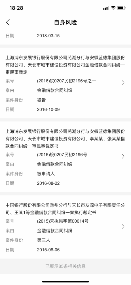 爱企查信息显示,2015年-2016年间,安徽蓝德集团共有8起被告或第三人身份的诉讼记录,案由为工程合同和金融借款合同。