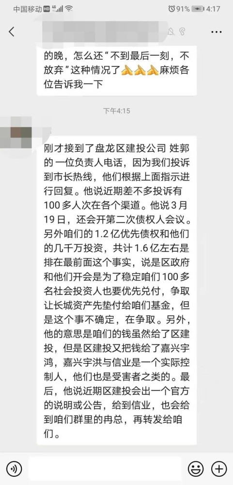 据王先生提供的一份群聊记录和债权人会议,稳晟2号的真实投向和昆明大田宥有关,信业基金提供了一份解决方案。