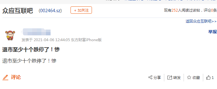 消息一出,众应互联今日股价直接一字跌停。持有众应互联的投资者懵了。股吧里的网友们也炸锅了,纷纷讨论能不能“逃掉”。有网友表示亏了4万,逃不掉。