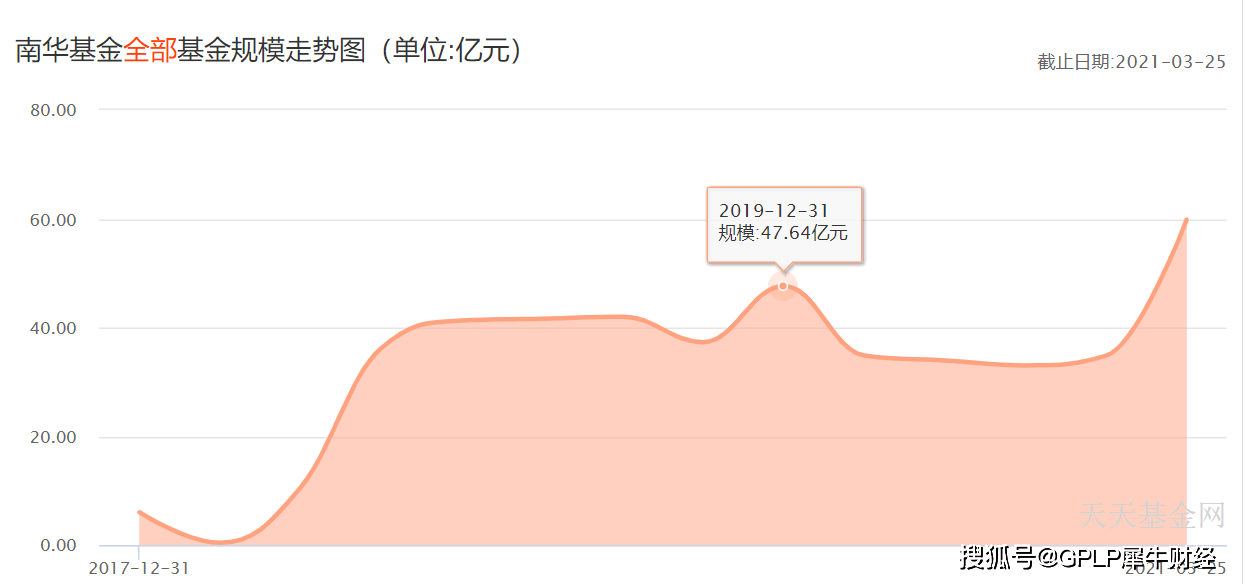 据天天基金网,截至2021年3月25日,南华基金总管理规模为59.83亿元,基金数量共21只,其中南华瑞盈混合发起C、南华丰淳混合A/C、南华中证杭州湾区ETF联接A/C、南华瑞泽债券A/C、南华瑞扬纯债A/C、南华瑞恒中短债债券A/C、南华价值启航纯债债券C等7只产品规模不足2亿元。