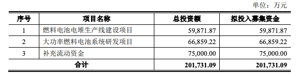 据悉,重塑股份于2021年3月2日提交科创板上市申请,拟发行股票不超过2166.54万股,募集资金约20.17亿元,将用于燃料电池电堆生产线建设项目、大功率燃料电池系统研发项目、补充流动资金。