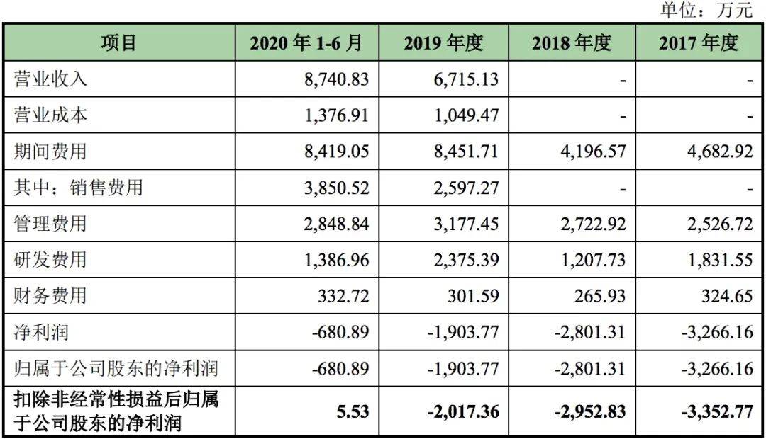 进入2020年,该公司亏损态势仍未有所缓和,仅上半年净利润就已亏损近七百万元。截至今年六月末,其累计未弥补亏损达-0.22亿元。对此,该公司在招股书中的解释为,主要系公司自成立后长期从事疫苗研发,周期长、资金投入大。