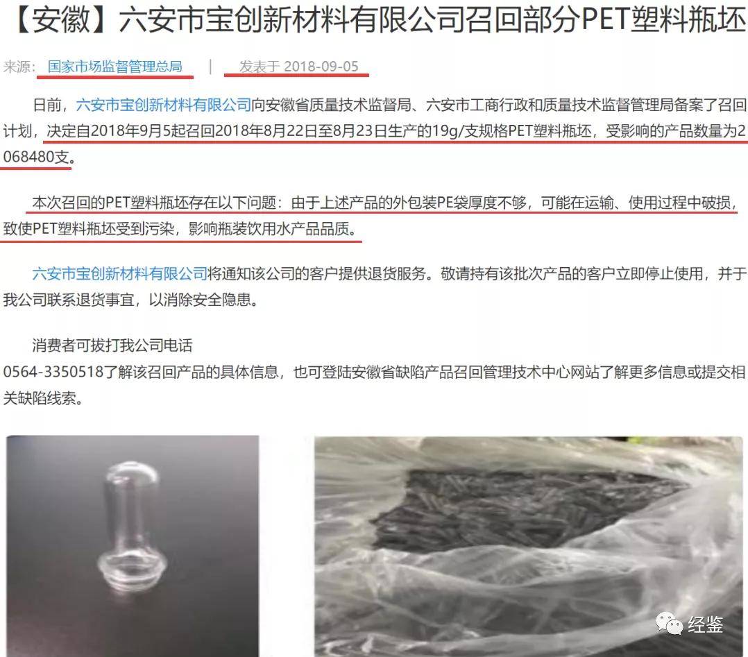 此外,据国家市场监督管理总局2018年9月5日公示,华研精机控股子公司六安宝创因产品质量问题对部分PET塑料瓶坯进行召回,受影响产品数量为2068480支。