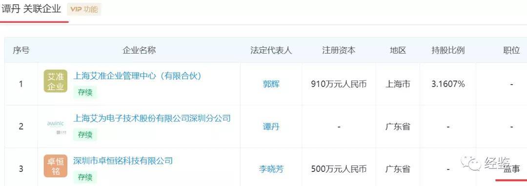 但工商资料显示,谭丹目前还担任深圳市卓恒铭科技有限公司监事职务,该司从事业务与艾为电子主营业务存在较强的关联性。