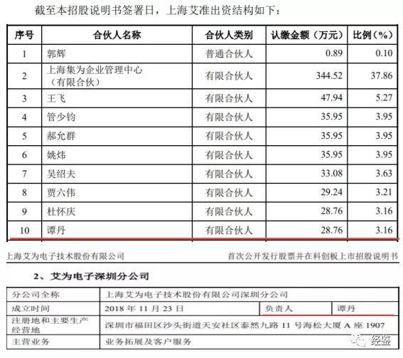 另据招股说明书披露,谭丹为艾为电子员工持股平台上海艾准有限合伙人,持股3.16%,并且担任艾为电子深圳分公司负责人。
