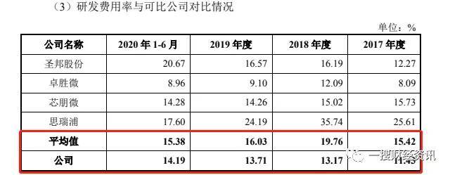 招股书显示,2017年-2020年上半年,艾为电子的研发费用分别为5983.68万元、9137.14万元、1.39亿元、7.21亿元,占营收的比例为11.43%、13.17%、13.71%和14.19%。同行可对比公司平均值分别为15.42%、19.76%、16.03%、15.38%。艾为电子研发费用率明显低于同行均值,科创属性何在?