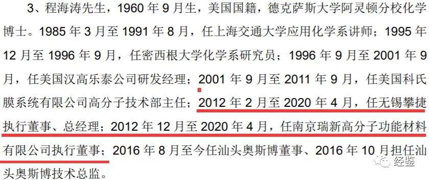 “巧合”的是,唯赛勃核心技术人员、子公司董事和技术总监程海涛先生在上海丹布朗和无锡攀捷这两家公司均长时间任职。程海涛与程宇之间是否存有亲属关系,招股说明书同样没有披露。