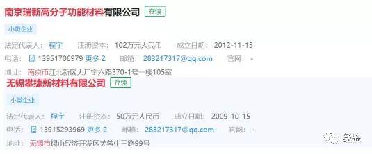 经鉴上市公司课题研究组了解到,上海丹布朗法人代表夏杏珍,同时也是唯赛勃报告期内关联方无锡攀捷新材料的实际控制人,控股80%;该司的法定代表人程宇,同时也是南京瑞新高分子功能材料有限公司法人代表。