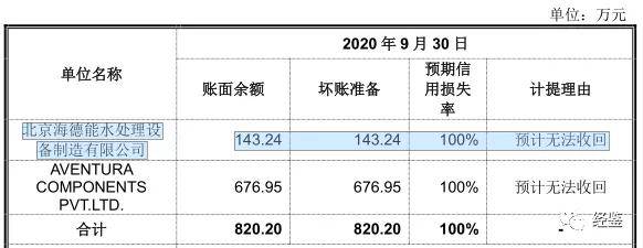 值得注意的是,唯赛勃在2019年将北京海德能告上法庭,但同年5月北京市大兴区人民法院确认该司确无财产可供执行。招股说明书披露,截至2020年9月30日,唯赛勃对北京海德能应收账款计提坏账合计143.24万元。