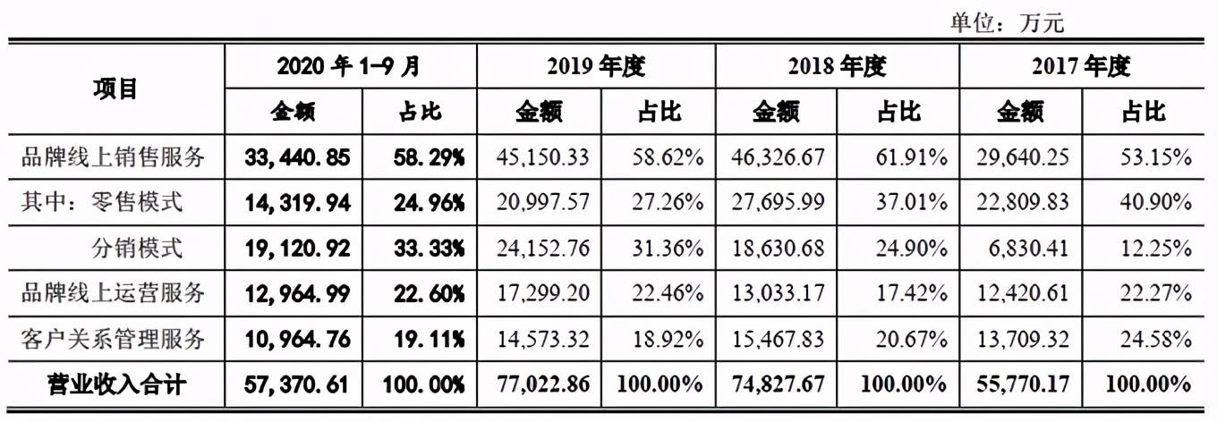 另据招股说明书披露,品牌线上销售服务主要通过采购商品并向消费者或分销客户销售从而赚取购销差价,因此,品牌线上销售服务成本主要为商品采购,相关的仓配物流费及电商平台服务费等均确认为期间费用。