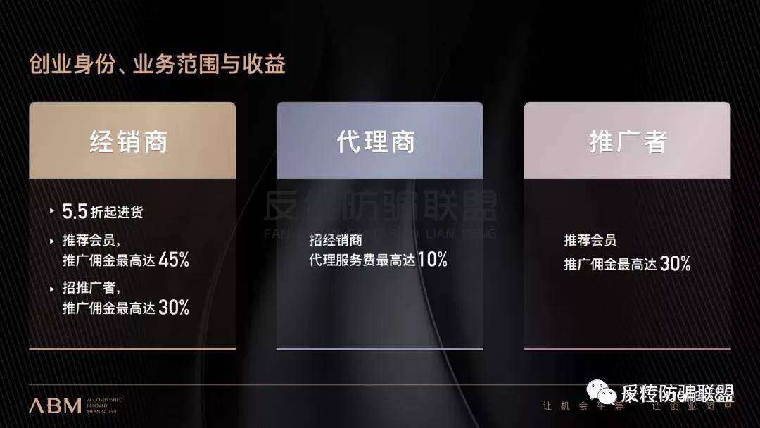 显然该制度与“传销”模式相近。但是ABM认为该制度不属于传销。