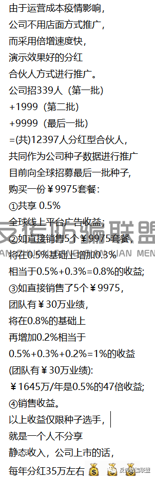 据了解,未来科技公司采用分红合伙人方式进行推广: