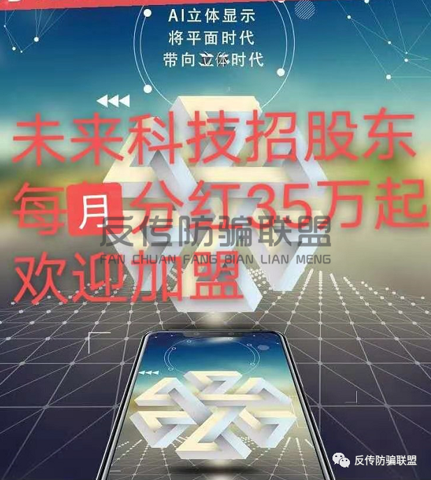 近日,一名网友咨询反传防骗联盟“在广州有一家名为‘未来科技’的公司以‘投资未来’为名高价售卖手机,购买手机后可享受每月分红”的真实性。
