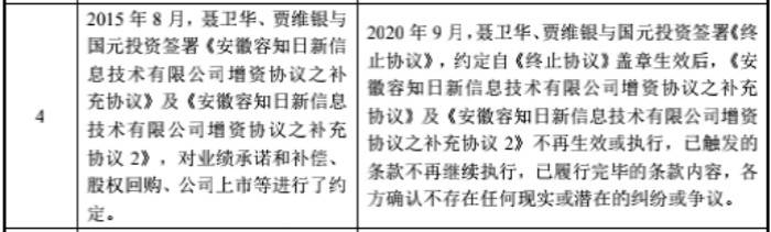 对此,容知日新回应称,海通兴泰出具了《关于终止对赌的确认函》、《确认函》,海通兴泰与容知日新及其相关股东之间曾经签署的对赌协议/条款和类似安排均已终止履行,不存在任何现有或潜在争议或纠纷,不存在仍在生效的特殊约定,对赌协议已彻底终止。