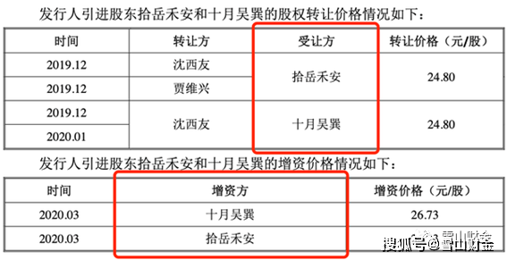 招股书显示,2019年12月,拾岳禾安从沈西友、贾维兴处受让股份;2019年12月、2020年1月,十月吴巽从沈西友处受让股份。