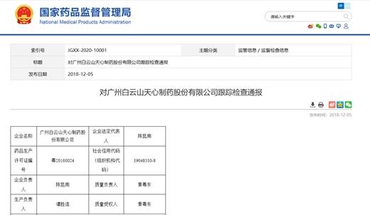 白云山子公司天心药业检出可见异物 曾被收回GMP证书