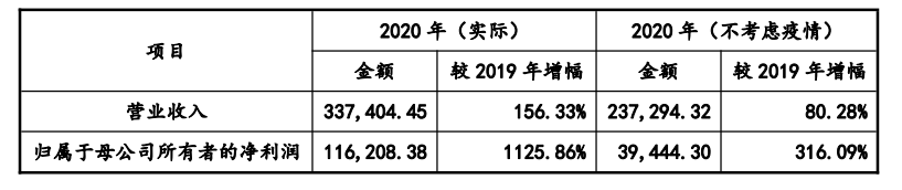 优全护理2020年利润暴增十余倍,与新冠疫情密切相关。那么如果没有疫情因素,公司还能保持如此增长吗?对此,招股书中也进行了测算:剔除疫情对纺粘非织造材料和热风非织造材料单位售价的影响,按照纺粘非织造材料和热风非织造材料单位售价仅与2019 年持平进行测算,则2020年度公司营业收入为 23.74亿元,归属于母公司所有者的净利润为3.98亿元,大幅低于同期实际数据。