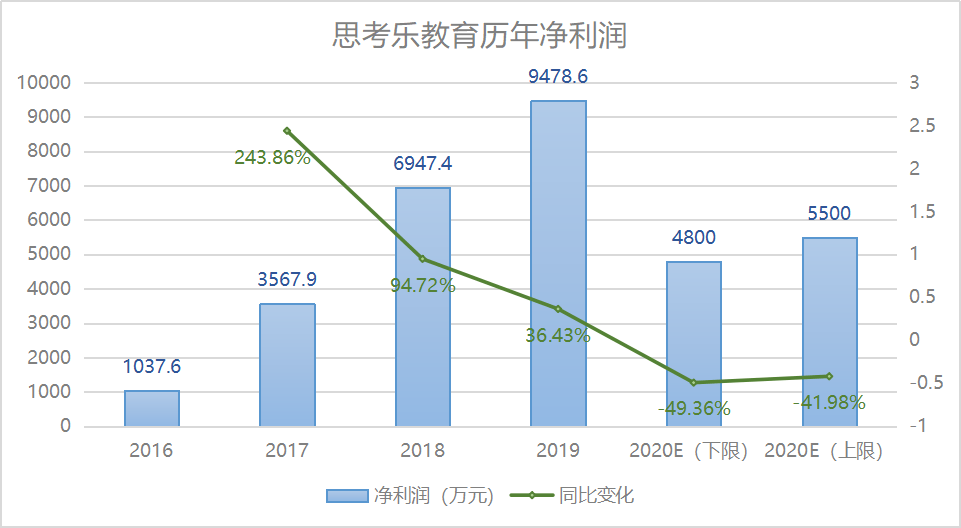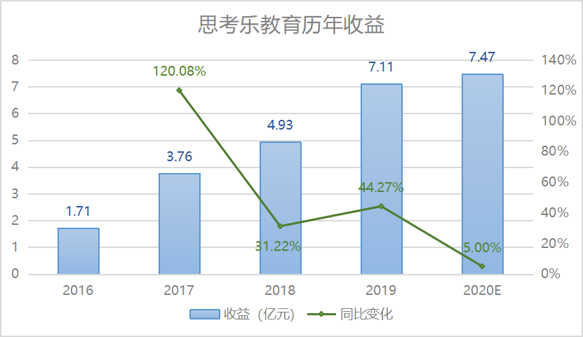 然而2020年,思考乐的收益增速狠狠踩了一脚刹车,预计收益较2019年同期将微增5%。
