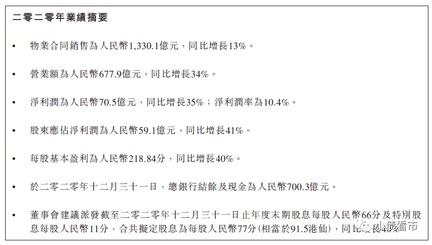 据业绩公告显示,2020年中国奥园实现营业收入677.9亿元,同比增34%;实现归属股东净利润59.1亿元,同比增41%。