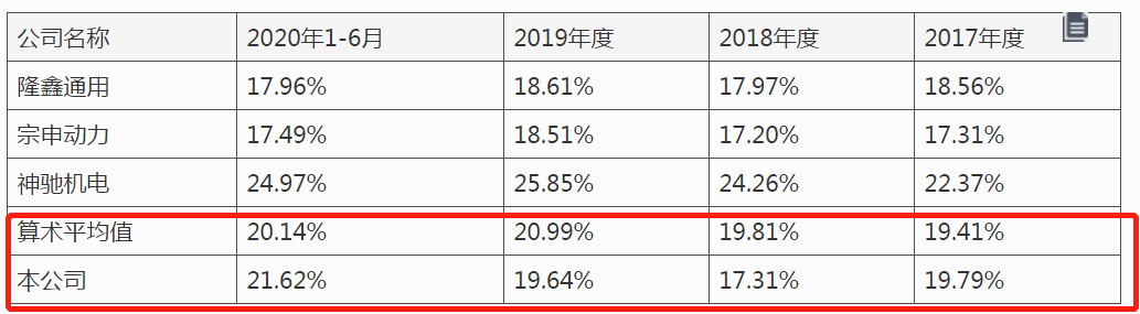与此相关联的是,绿田机械的毛利率也常常处在危险“边缘”。2017-2020年上半年,公司综合毛利率分别为19.95%、17.42%、19.68%和21.53%,波动较为明显。尤其是在2018年和2019年,绿田机械的毛利率均低于同行业可比上市公司。