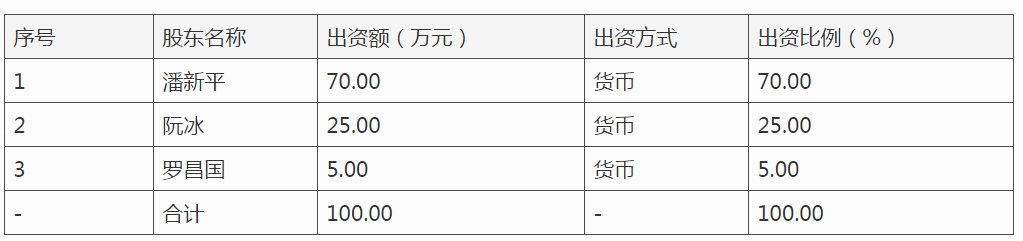 绿田机械前身为台州市绿田机械有限公司(以下简称“绿田有限”),成立于2002年6月,注册资本人民币100万元,其中潘新平以货币资金70万元出资,占注册资本的70%,阮冰以货币资金25万元出资,占注册资本的25%,罗昌国以货币资金5万元出资,占注册资本的5%。