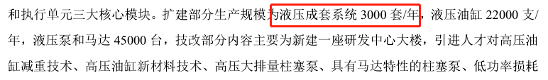 产能披露不一。招股书显示邵阳液压件生产基地技术改造与产能扩建项目(下称“扩建项目”)建成后每年新增液压系统1,400套,环评显示新增液压成套系统3,000套/年,数据相差1,600套。关于液压柱塞泵/液压泵、马达,液压缸/液压油缸两组产品,招股书与环评文件披露产品名称略有区别,但增加的产能数据则完全一致。