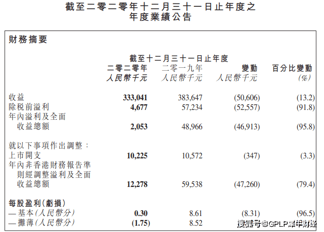 3月31日,大山教育(09986.HK)发布2020年业绩报告,2020年录得收益3.33亿元,同比下滑13.2%;录得年内溢利205.3万元,同比下滑95.8%。