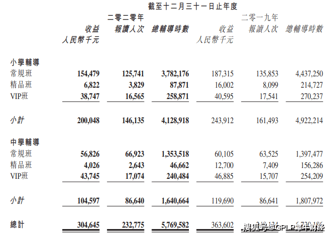 据业绩报告,大山教育2020年各类型中、小学辅导班的收益全部呈不同程度的下滑。其中,占比总收益份额最大的小学辅导常规班录得收益1.54亿元,同比下降17.53%,占总收益的46.38%。