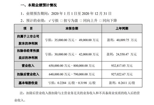 延安必康表示,由于诉讼尚未审理,未产生具有法律效力的判决或裁定,公司目前无法判断其对本期利润或期后利润产生的影响。不过,不久前,延安必康披露的业绩预告显示,公司2020年业绩10年来首亏。其中,归属于上市公司股东的净利润亏损3.5-4.9亿元;扣除非经常性损益后的净利润亏损3.0-4.2亿元。
