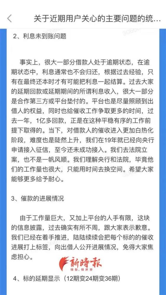 2021年3月30日,为了打消出借人的疑虑,医界贷APP发布一则《关于近期用户关心的主要问题的统一解释》。根据文中解释,在国家政策的影响下,医界贷平台业务已停止多时,目前正处于逐步压降清退过程中,去年陆续实现了1亿左右的还款,数千名用户成功退出。由于借款单位也知晓行业清退政策,部分人抱着逃废债的侥幸心理,还款意愿下降,给今年的催款工作带来了更多困难。过去大家的延期回款或延期期间的所谓利息收入,很大一部分是合作第三方或平台垫付的。关于为何全部项目均出现本金和利息逾期情况,平台也解释称,“不是全部的项目一起不还,是之前很多就逾期未还,是公司决定不再垫付了,无法再进行垫付了。后续借款人实际还多少就还多少,一直讨到还清为止。”