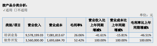 由于疫情影响,京融教育2020年的培训业务由线下转为线上,导致营业成本同比增加4.33%,至877.55万元。同时,为了创收,京融教育2020年新增了软件开发项目。目前,京融教育的主营项目有两个,分别为原有的培训业务和新增的软件开发业务。