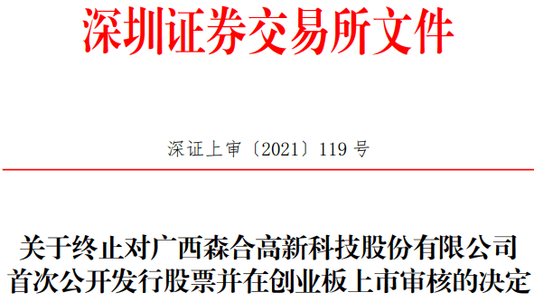 2021年4月7日,森合高科向深交所提交了《广西森合高新科技股份有限公司关于撤回首次公开发行股票并在创业板上市申请文件的申请》(森合字〔2021〕2号),保荐人向深交所提交了《国海证券股份有限公司关于撤回广西森合高新科技股份有限公司首次公开发行股票并在创业板上市申请文件的申请》(国海报〔2021〕103号)。
