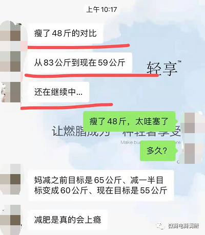 在当下的互联网中,为了佐证纤俏国际旗下产品具有减肥功效,在微博上、公众号文章以及经销商的朋友圈中,各种瘦身案例可以说是屡见不鲜。