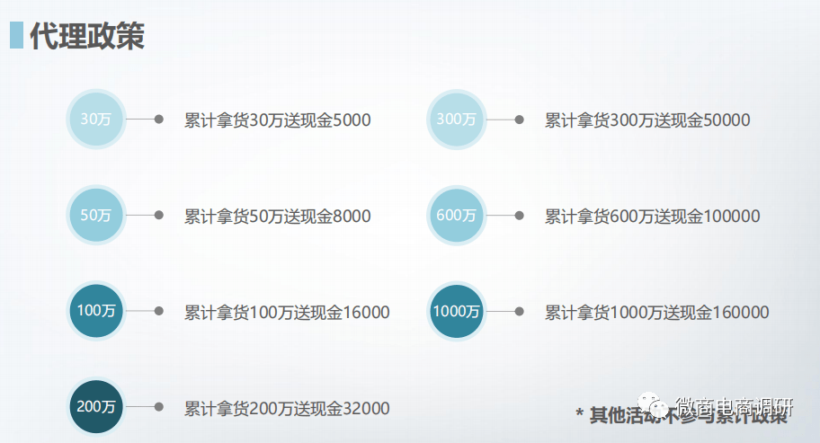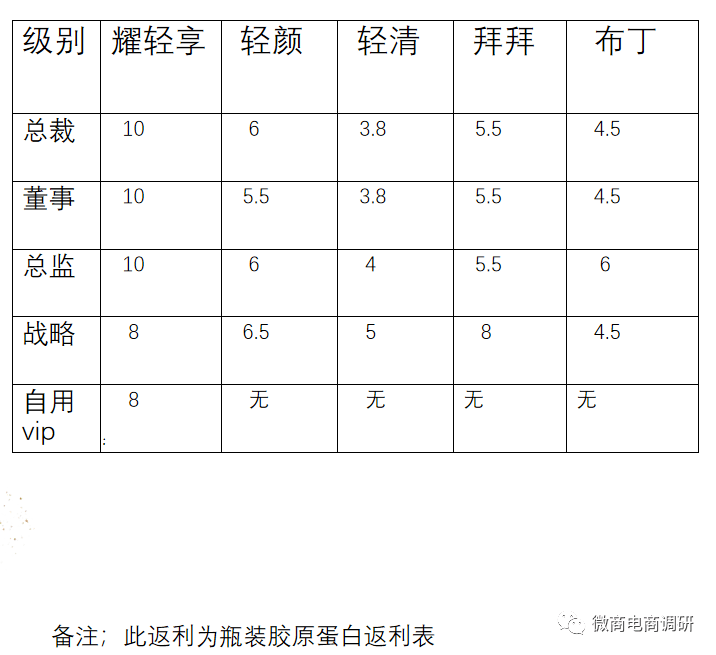 备注:第一,返利均由直接上级返给代理;第二,低级别推荐高级别,对照级别按照返利表的百分之三十进行返利(返利三次,跨级两级以上返利一次)之后将解除利益关系,由自己商家管理;三,除联创级别招募联创以外,其他所有级别均为一次性返利百分之三十(最终解释权归公司所有)。
