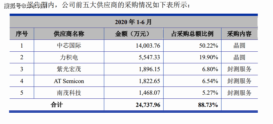 其中,中芯国际是第一大供应商,采购比例高达24.4%、40.31%、56.83%和50.22%,占到了半壁江山。